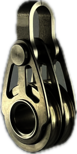 Mit Hilfe dieser kompakten Rolle wird das Zugseil direkt nach unten in den Reitbalken oder die Befestigungskonsole umgelenkt.